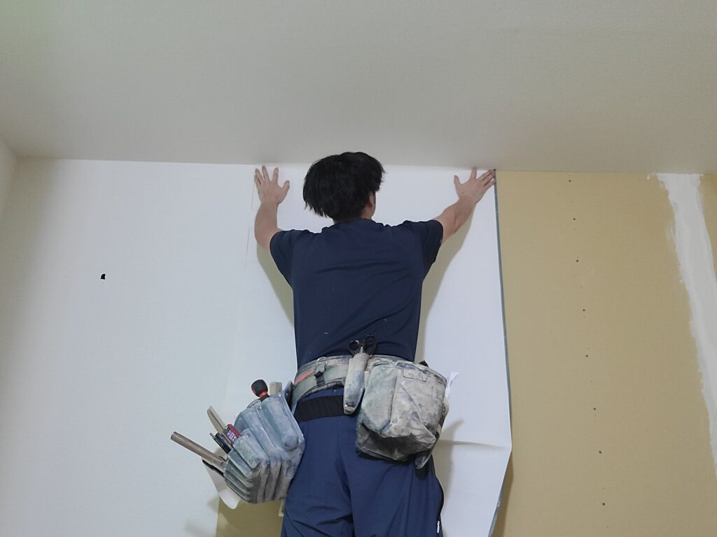 壁紙、クロスは″仕上げ仕事″と言われています。簡単に説明すると大工さんが組み上げた家を、クロス屋が内装の見栄えを良くして仕上げるからそのように言われています。そしてお客さんの視線に一番多くふれるのがクロスです。外壁や駐車場も暮らせば見ます、しかしクロスは家の中にいればずっと視線に入っているんです。その上クロスの施工は簡単なようでとても難しく、職人の中で一番クレームの多い仕事です。壁紙と壁紙の繋がる部分であるジョイントは1mm隙間になっているだけでクレームになってしまいます。